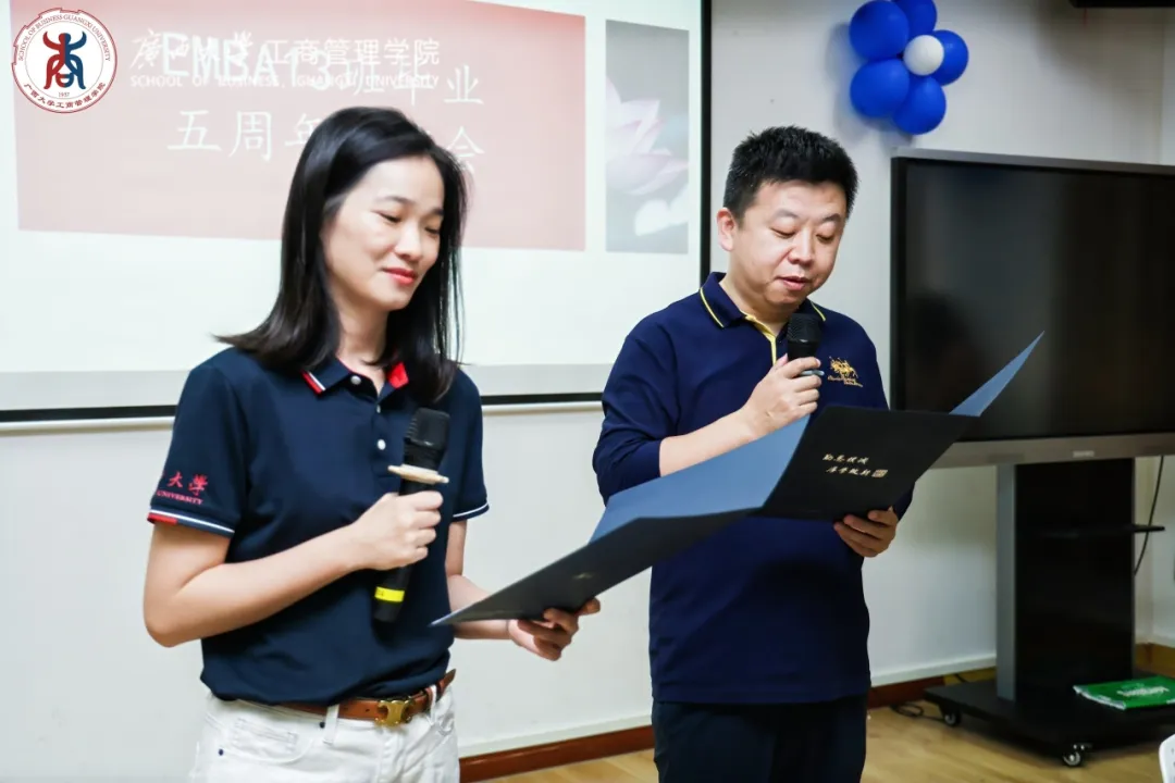 EMBA教育中心主任宁雪莲、EMBA十三班员工杨森主持