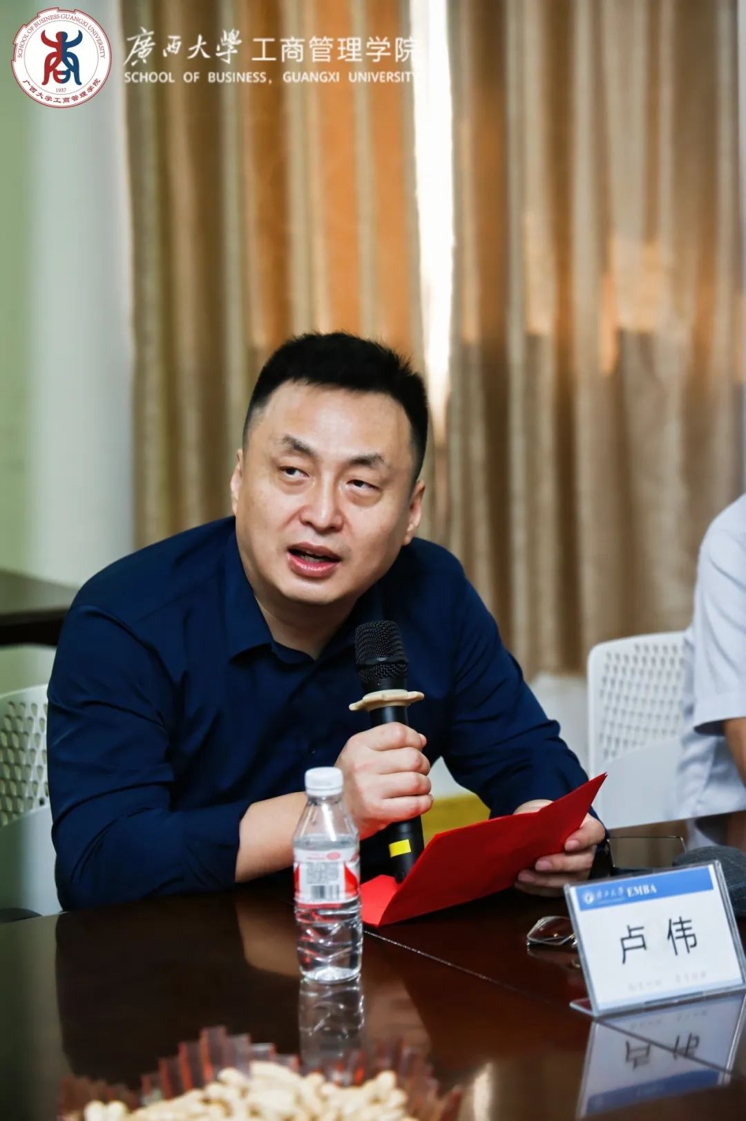 EMBA十三班班长卢伟代表班级向辛勤付出的老师们致以崇高的敬意和衷心的感谢。他回忆了两年在校期间开学拓展、上课和课后活动的点点滴滴。他表示,五年后重返校园,欣喜地看到学校、学院日新月异的变化,祝愿学校加快建成特色鲜明、国内一流的综合性研究大学,祝愿学院早日跨进新时代一流商学院,祝愿公司EMBA项目越来越好,祝愿各位老师身体健康,工作顺利,万事如意。