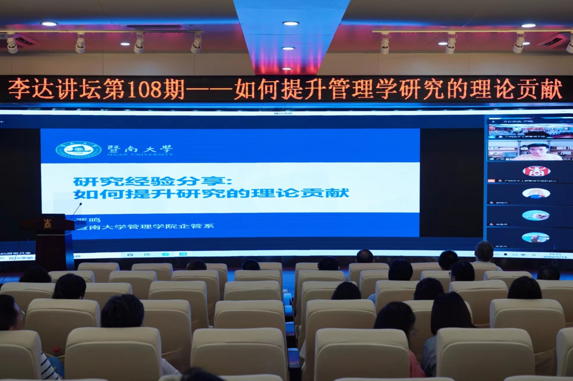 应公司邀请,暨南大学管理学院严鸣教授于2022年6月14日和6月16日做客公司“李达讲坛”,以“如何提升管理学研究的理论贡献”为题为师生们做了两场精彩的学术报告。讲坛由公司经理朱帮助教授主持,学院全体专任教师以及部分博士生、硕士生到场聆听和学习交流。